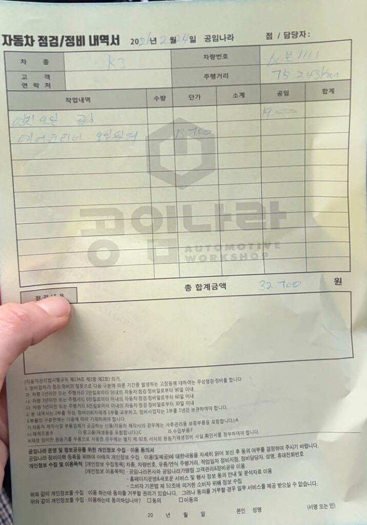 - 필터류 선택: 오일필터와 에어클리너는 미리 사가도 되지만, 현장에서 공임나라 보유분을 구매해도 가격 차이가 크지 않아 편리합니다.